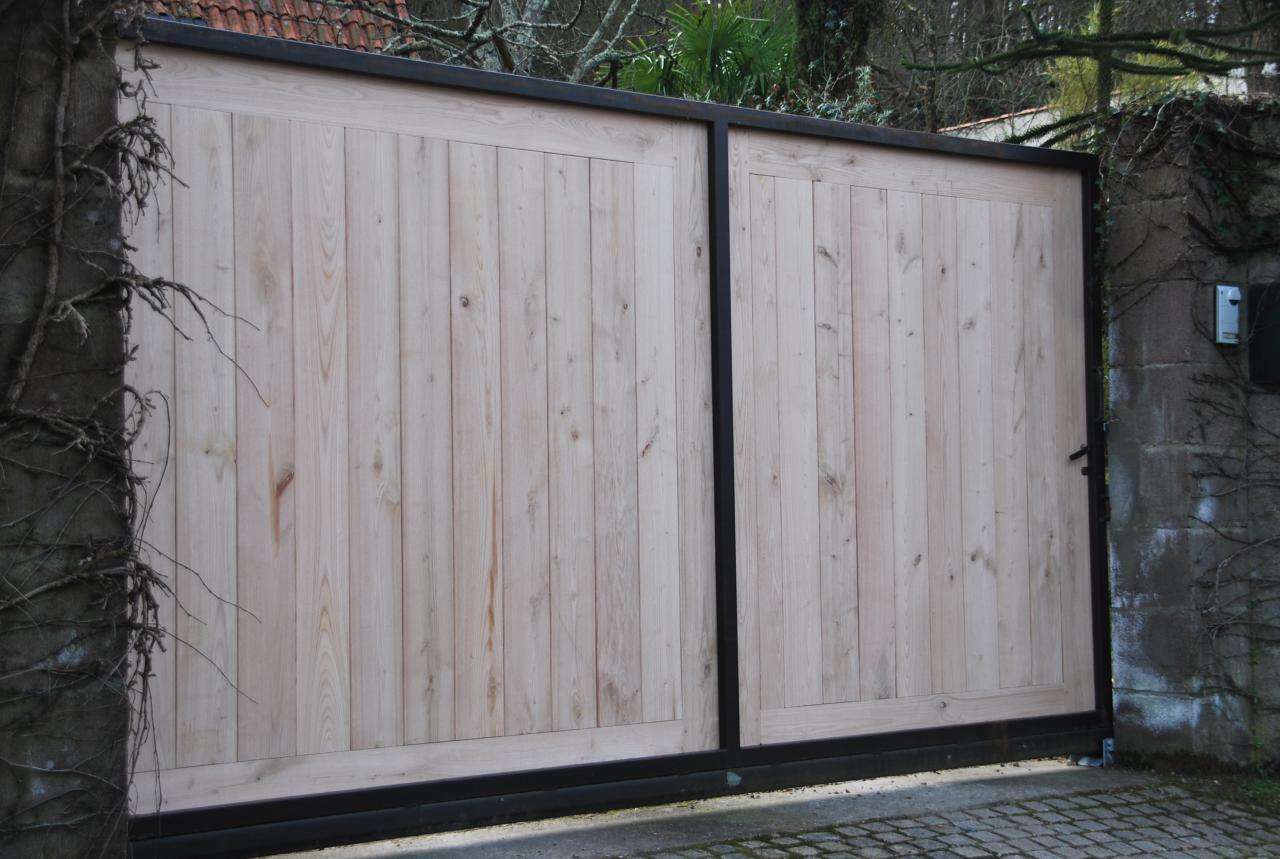 Portail coulissant métal et châtaignier